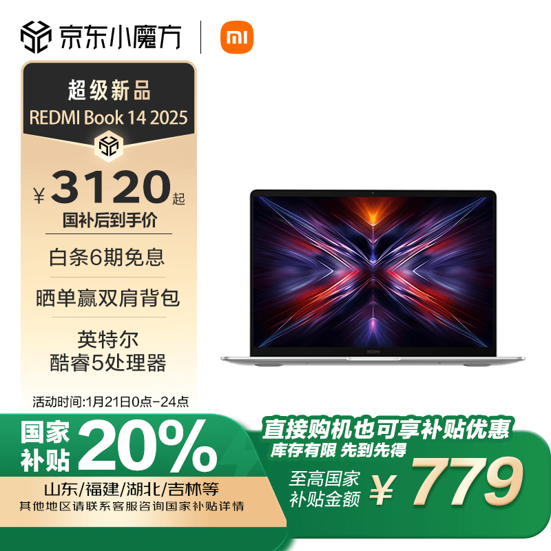 小米REDMI Book 14笔记本限时优惠,满减立减到手价只需3829元!