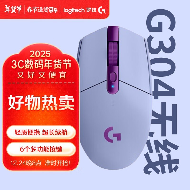 罗技G304无线鼠标 年货节特价187元