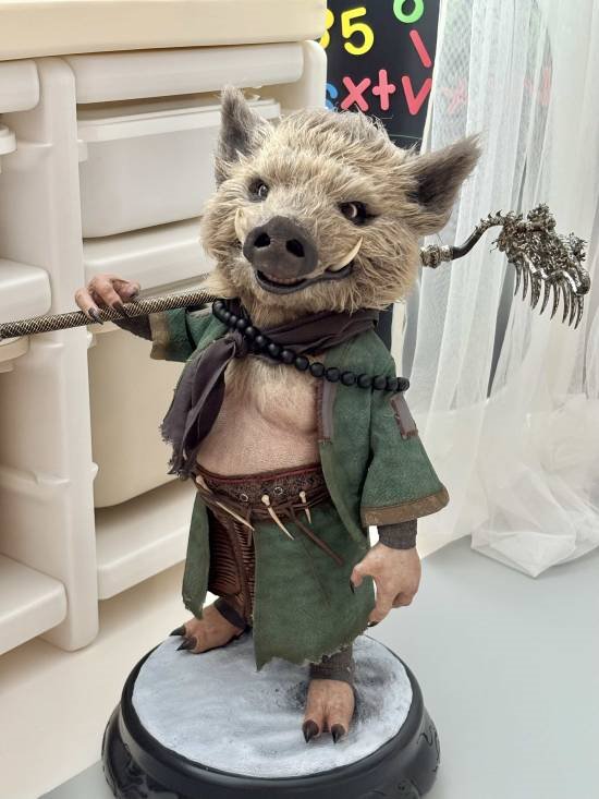 今日,B站百大、UP主@利维坦mY分享了八戒雕像的实物图,高度评价了产品的细节,称之为收藏级雕像一点也不为过。