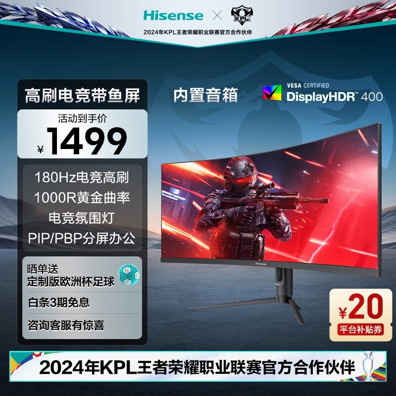 海信34G6K-PRO显示器优惠价1175元 专为电竞游戏设计