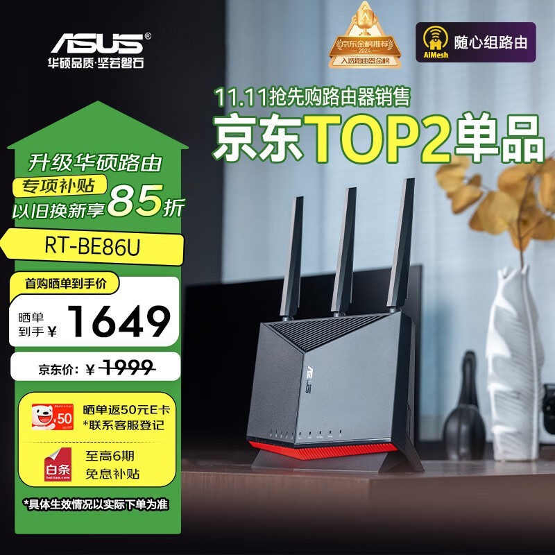 华硕RT-BE86U万兆路由器到手价1610元!