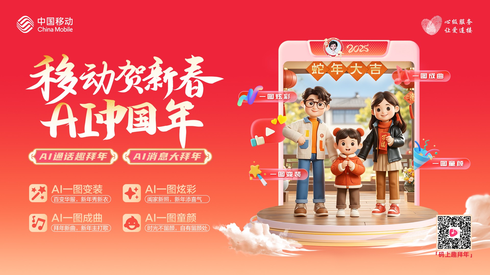 这个中国年,中国移动AI视频彩铃升级丰富玩法,让传统的新春拜年方式焕发新活力,用AIGC技术的加持,让每一个用户都能成为中国年的创作者、推广者。这个春节,让我们一起“玩转AI”,用中国移动AI视频彩铃,开启全新的拜年模式。