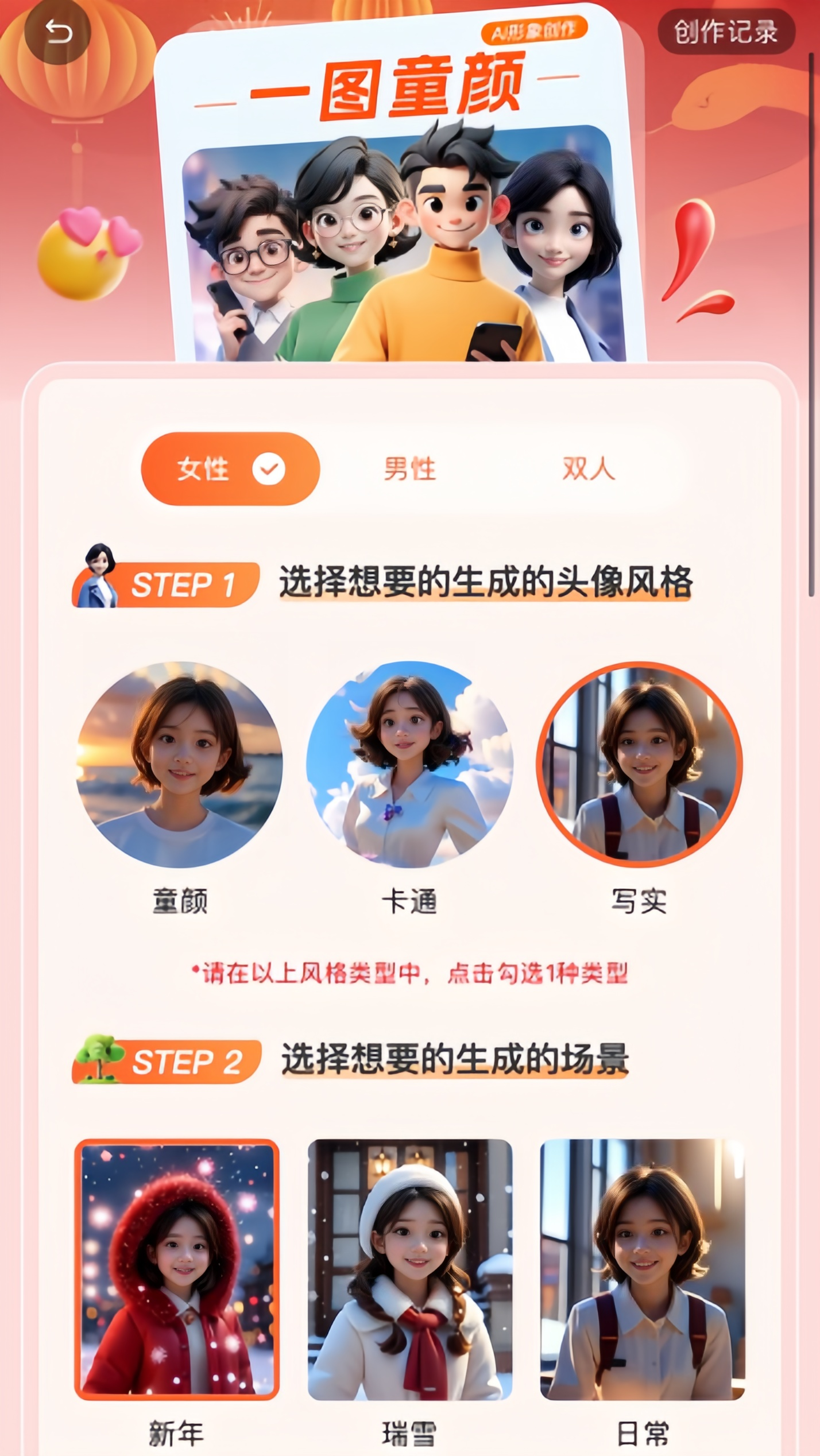 追忆童年,重寻纯真岁月,这在春节期间是不少人的情感渴望。想重温儿时的纯真快乐吗?“AI 一图童颜”带您穿越时光,找回那份童趣。上传您的单人照或者合照,就能一键回到童颜时期,看到自己或家人萌态十足的童年模样。新年伊始,不妨用这种方式给家人和朋友送上一份特别的祝福,让他们在欢笑中“穿越”旧时光。