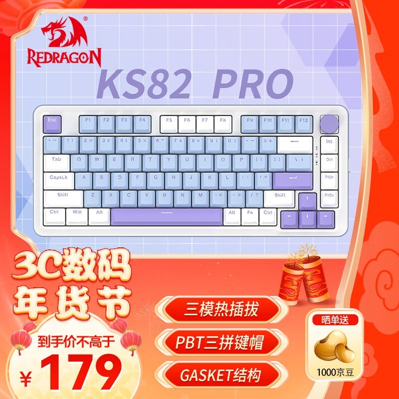 红龙REDRAGON KS82 PRO机械键盘110元到手史低价!
