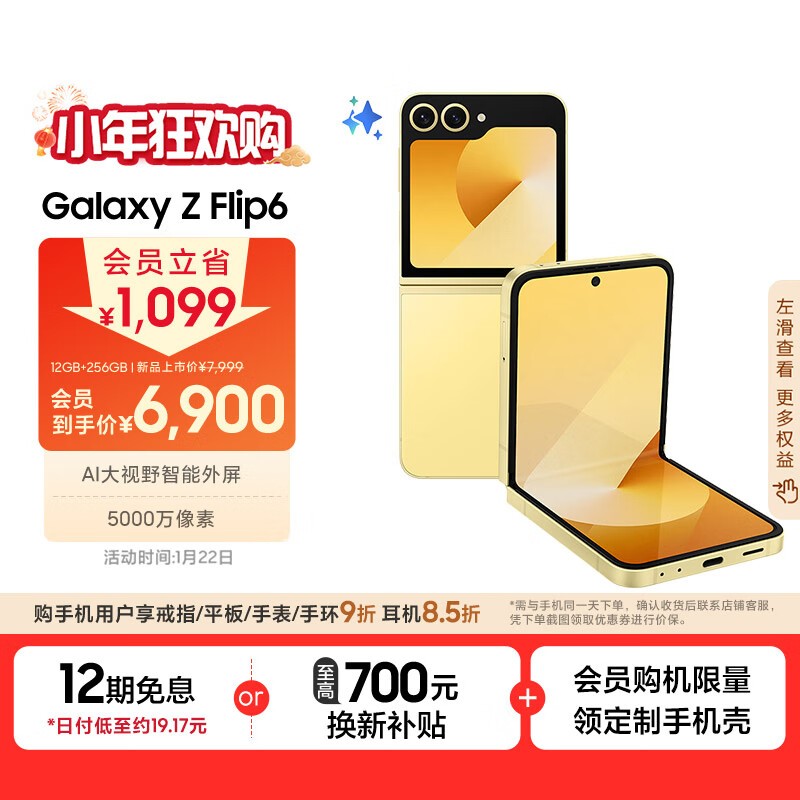 三星 Galaxy Z Flip6 折叠手机 9折优惠 6479元到手
