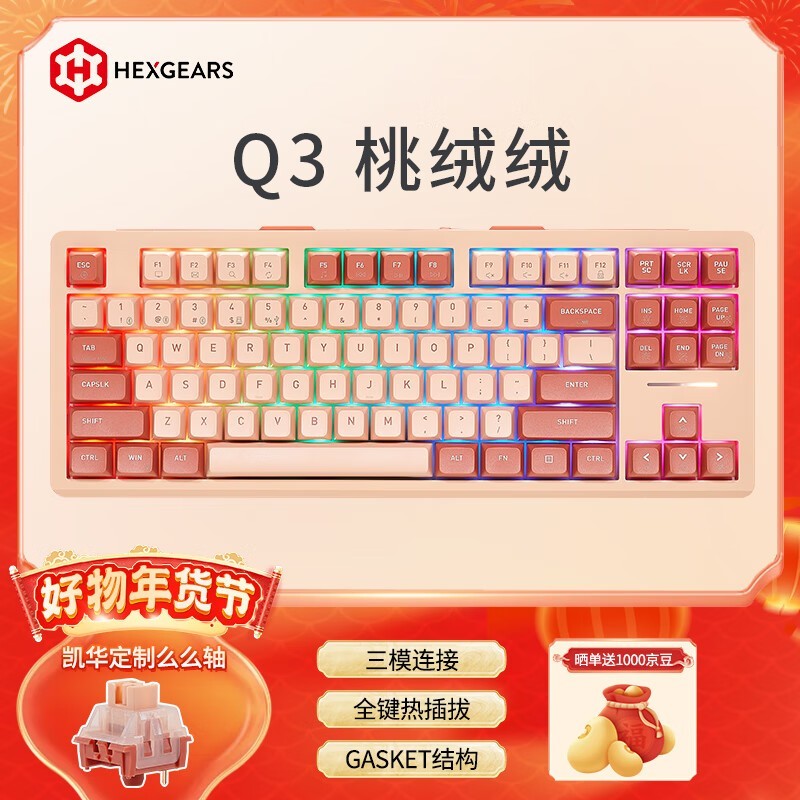 黑峡谷Q3三模无线蓝牙客制化机械键盘121元抢购