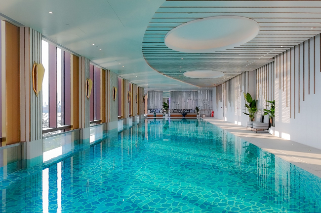 当天王嫂方媛踏入「天泷」 的私人会所 「Club Knightsbridge」,仿佛进入了一个专属的奢华世界。会所内的室内恒温泳池,宛如一颗深邃的蓝色宝石,在柔和灯光下熠熠生辉,池水清澈,泛起的涟漪似在诉说着地中海的浪漫故事。泳池周边摆放着精致躺椅,柔软浴巾和清新绿植错落有致,每一处细节都尽显尊贵与惬意,为天王嫂提供了一个放松身心的绝佳场所。