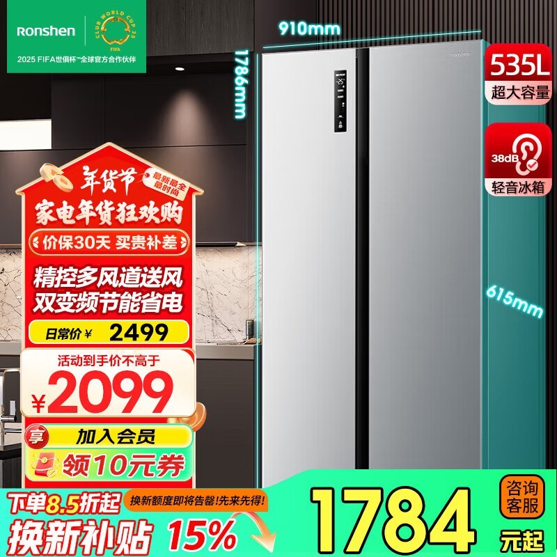 容声535升双门冰箱到手价1210元 限时优惠