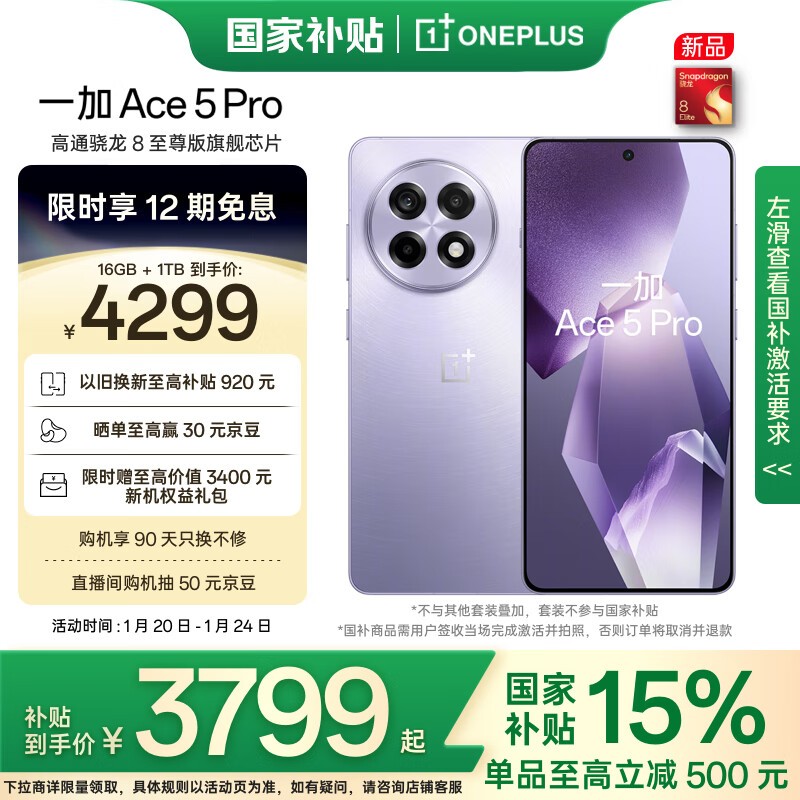 一加 OnePlus Ace 5 Pro 国补15%+400元优惠!只要3769元