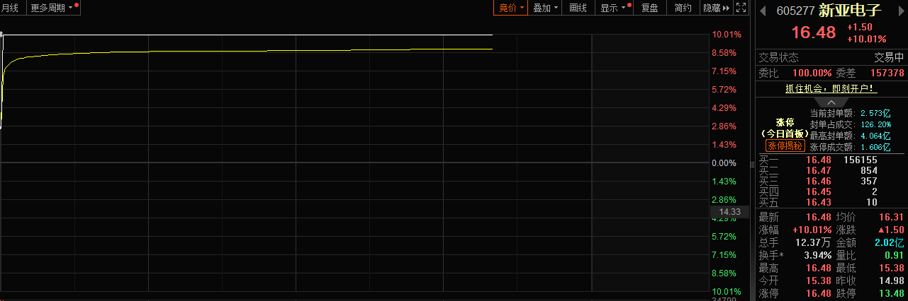 从股价表现看,1月22日早盘,新亚电子秒封涨停,股价表现极为强势。截至发稿,新亚电子涨10.01%,报16.48元/股。