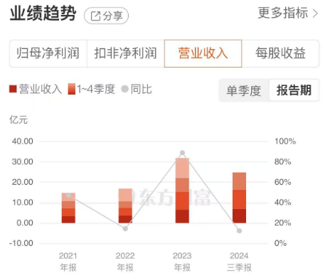 新亚电子创建于1987年,坐落于浙江省乐清市。长期以来,新亚电子坚持聚焦主营业务,稳步扩大公司的经营规模。2021年至2023年,公司实现营收分别为14.74亿元、16.86亿元、31.86亿元。2024年前三季度,公司实现营收24.79亿元,同比增长12.34%。