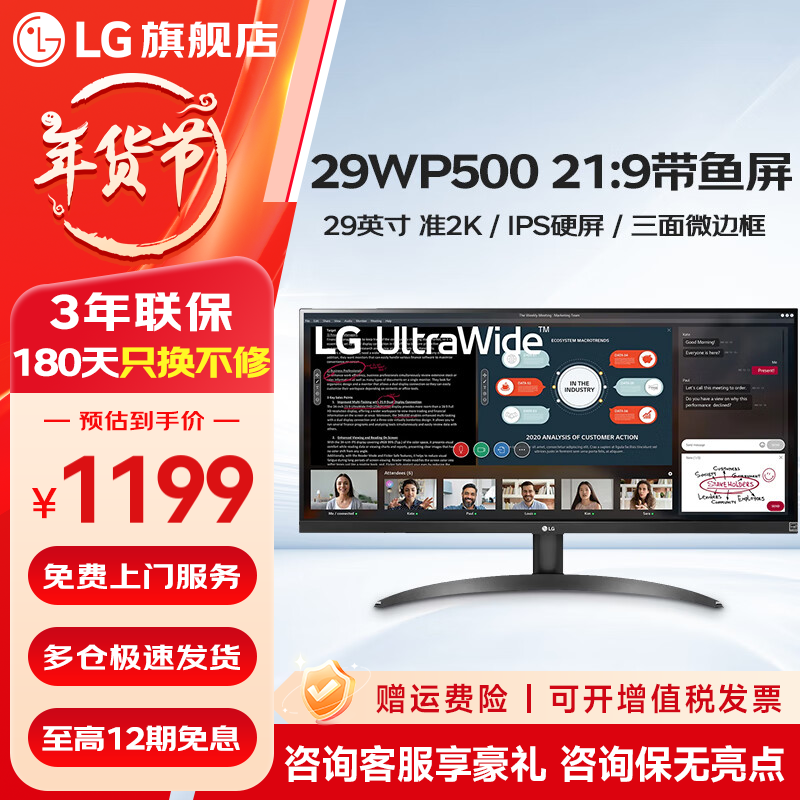 LG 29英寸准2K电竞显示器优惠到手价1099元