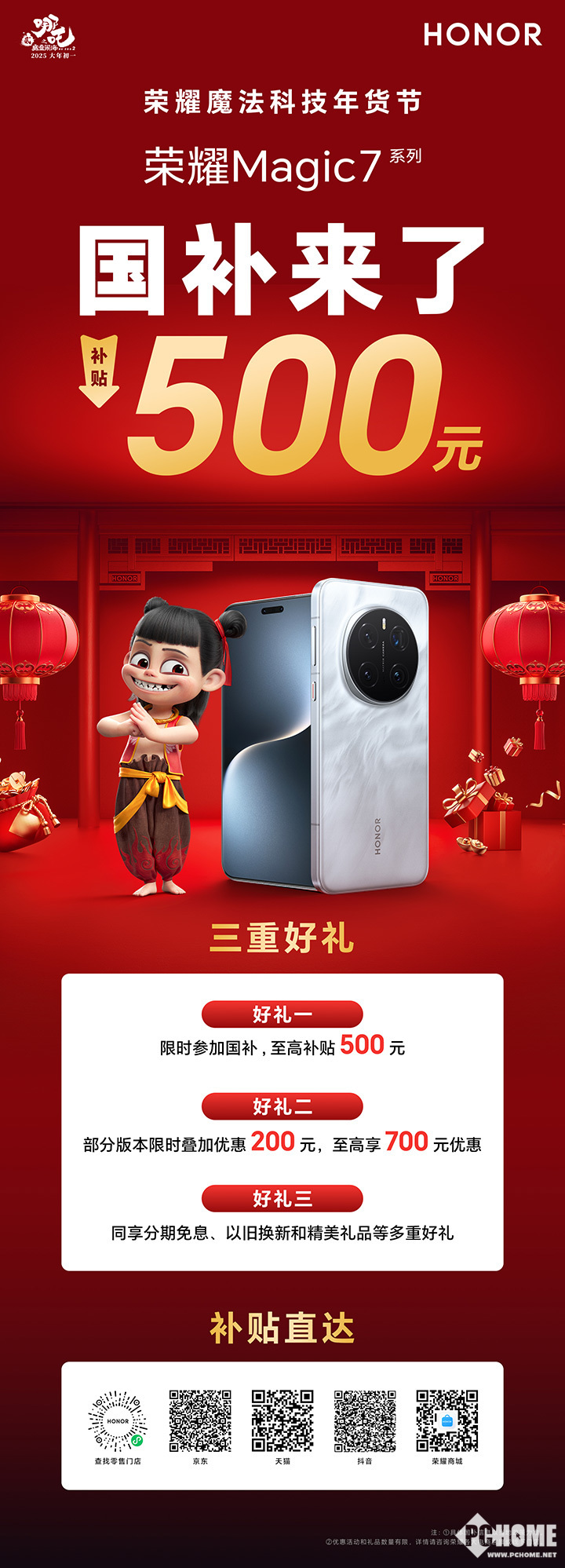 腊月二十三,小年已至,年味渐浓。近日,荣耀魔法科技年货节解锁全新玩法——“一句话召唤哪吒拜年彩蛋”、“一句话生成拜年视频”、“哪吒数字人魔法锁屏”,为消费者传递浓浓的魔法感科技年味。自2024年12月23日开启以来,荣耀魔法科技年货节便持续为消费者带来惊喜。尤其值得消费者关注的是,荣耀魔法科技年货节优惠叠加国补折上折,荣耀Magic7系列、Magic6系列、荣耀300系列、荣耀GT系列等众多热门机型参与,电商平台全场至高立减1500元!