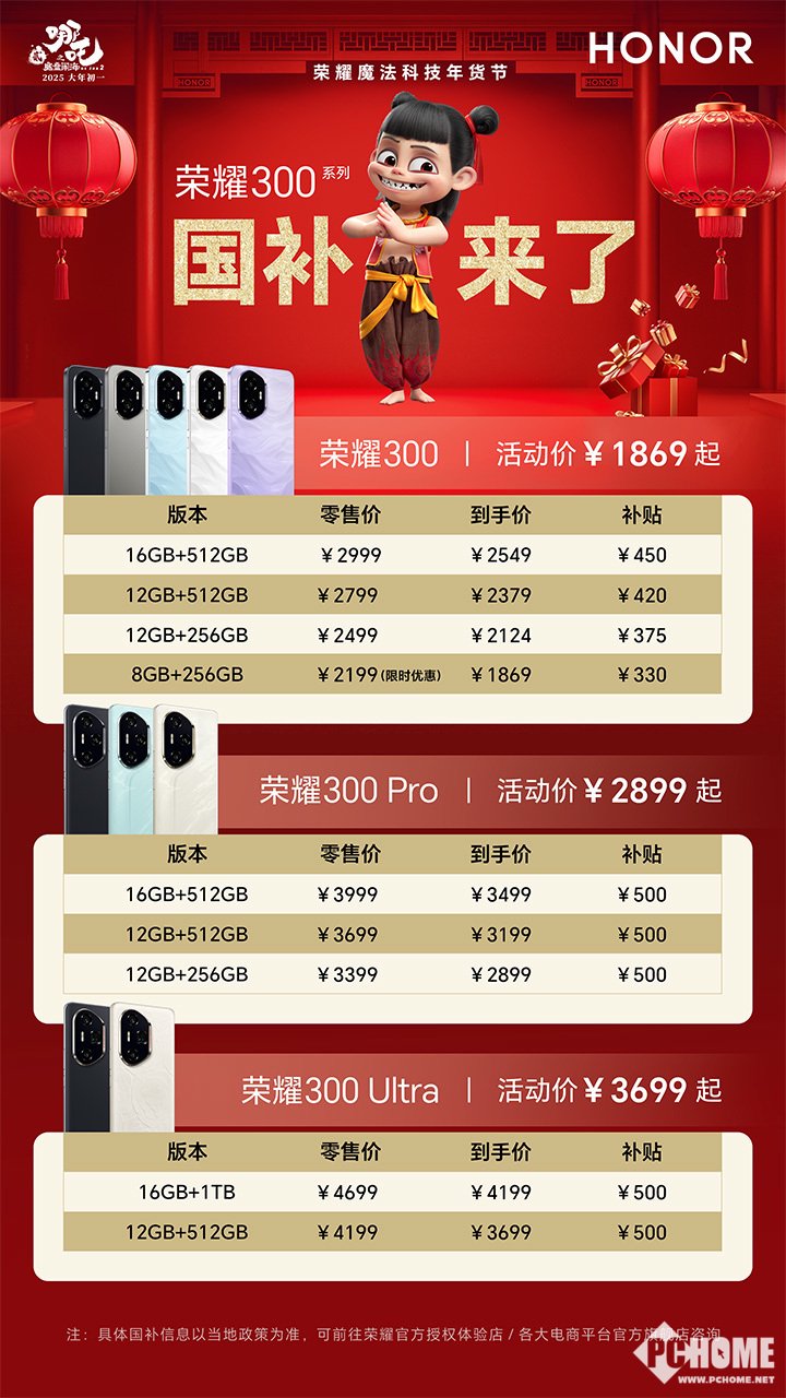 荣耀300 系列购机可享补贴15%,至高优惠500元,活动价1869元起!荣耀GT系列购机可享补贴15%,至高优惠330元,活动价1870元起!
