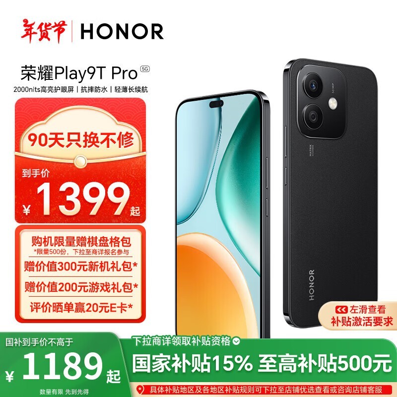 荣耀新机上架!荣耀HONOR Play9T Pro 5G到手价1138元