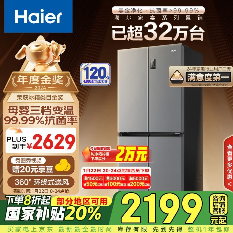 海尔节能大师冰箱1926元入手 一级能效超薄嵌入式设计
