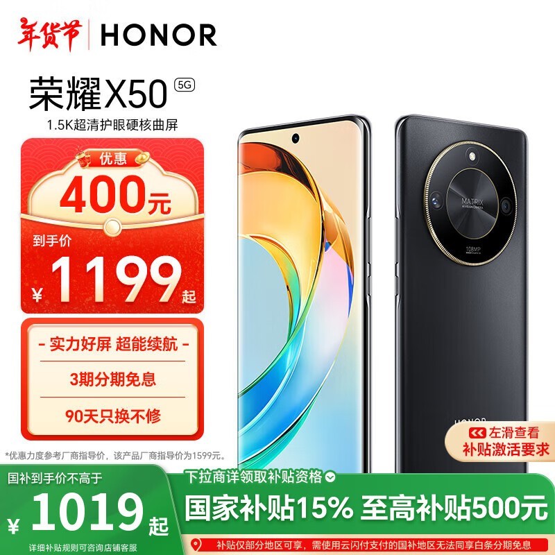 荣耀X50手机优惠来袭 原价1299元到手仅需1002元