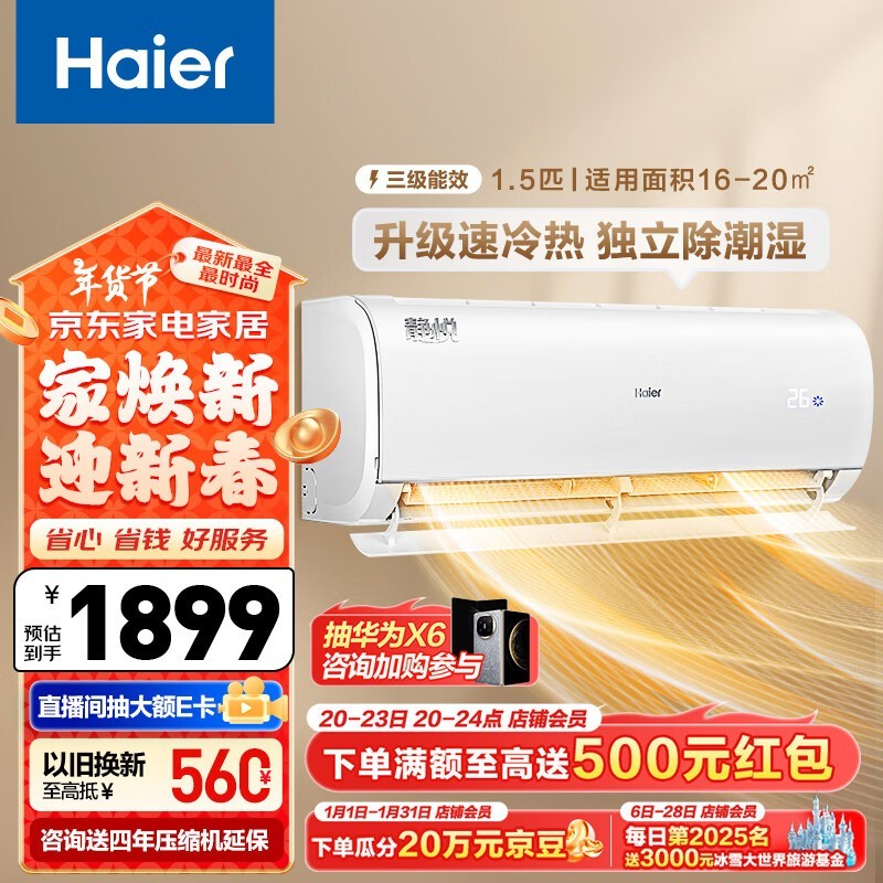 海尔静悦系列空调1匹售价降至1814元!