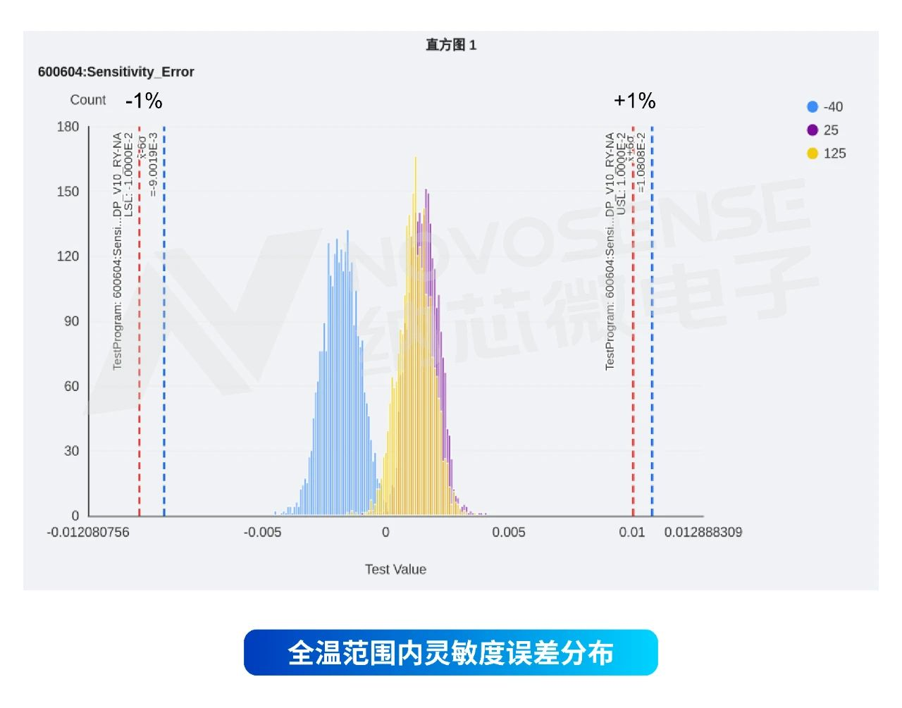 以下是NSM201x-P系列全温度范围内零点误差和灵敏度误差的批量数据分布情况: