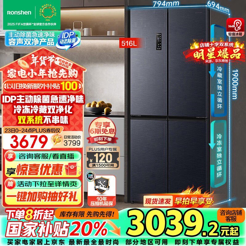 容声 离子净味516升双系统变频冰箱仅售2658元