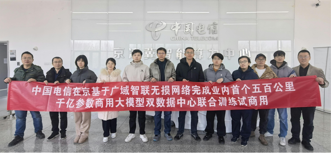 近日,在中国电信集团公司统一组织下,中国电信研究院、天翼云、北京电信成功完成业内首个1024卡千亿参数商用大模型分布式联合训练真实用户试商用,通过武清到瀛海之间的真实光路环回实现了500公里长距互联分布式训练,训练性能达到单数据中心的97%以上,这一重大突破为大模型训练的跨地域协同发展开辟了新的道路。