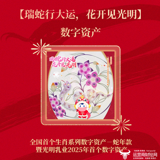 直播中,光明乳业继续为春节注入生肖文化的新活力,再度发力延续创新步伐,发布上线全国首款生肖系列数字资产蛇年款。此款数字资产沿用河北蔚县点彩刻纸中的蛇,发行数量限量999个,每个售价199元,发布1分钟即售罄。这不仅是光明乳业2025年在数字资产领域的开篇之作,更是全国首个生肖系列数字资产,开启了全民共享数字化年俗的全新篇章。