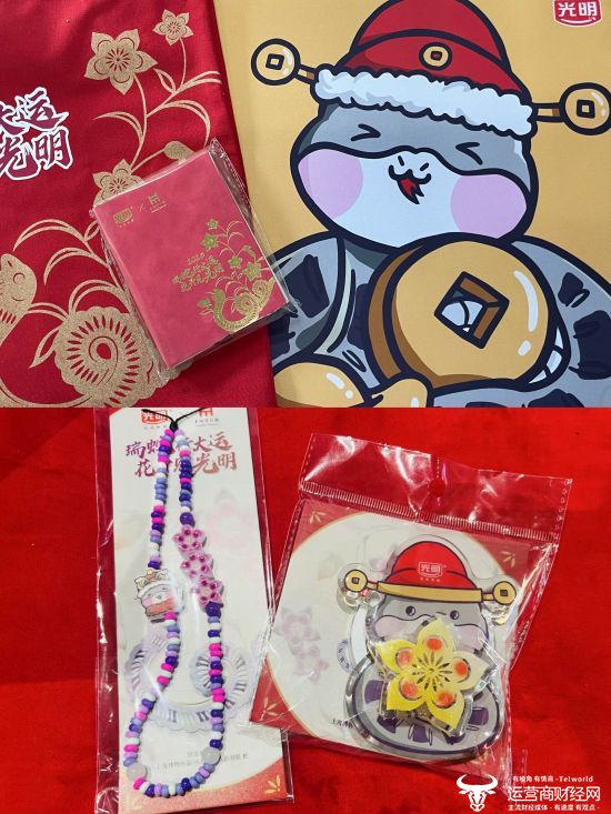 在直播过程中,光明乳业新年周边文创礼品亮相,变身福袋赠送消费者,拉满直播间互动值,为消费者带来新年好运及新年祝福。在新春假期,光明乳业设置了三个假期不打烊的快闪打卡点,分别为上博东馆二楼的光明悠焙快闪店、虹口区天宝路891号的光明乳业蛇年新春快闪店、静安区南京西路1376号的光明优加新春快闪活动,为消费者提供更多线下体验新品的机会。