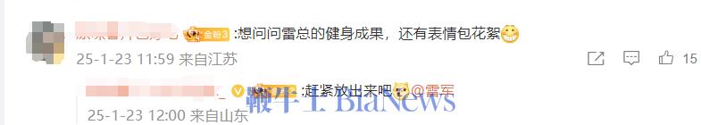 鞭牛士发现,有不少网友在评论区表示,想在直播中看看雷总的健身成果。
