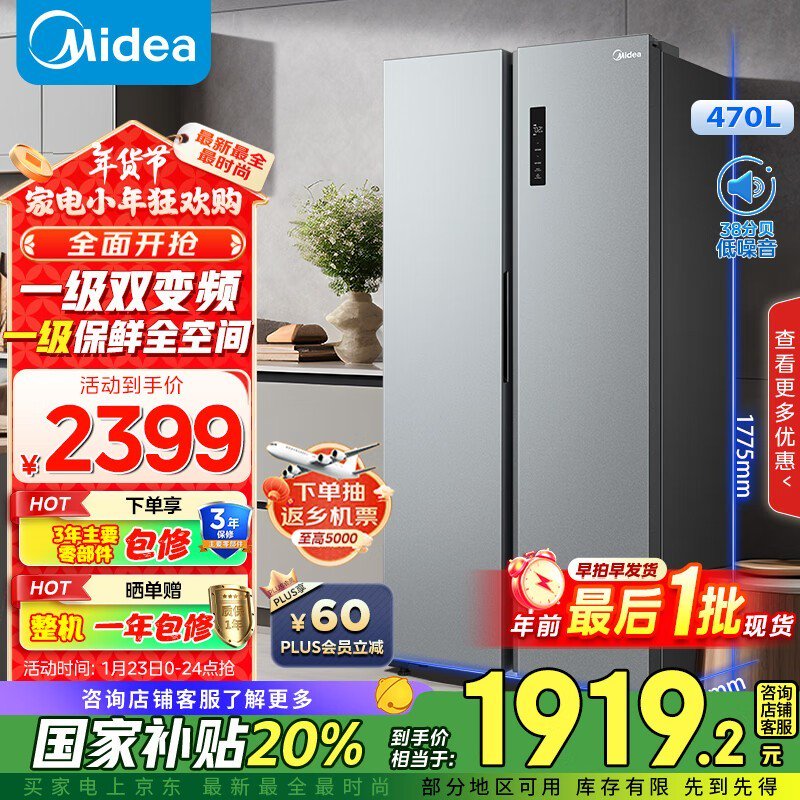 美的 BCD-470WKPZM(E) 风冷对开门冰箱 2399元入手节能还环保
