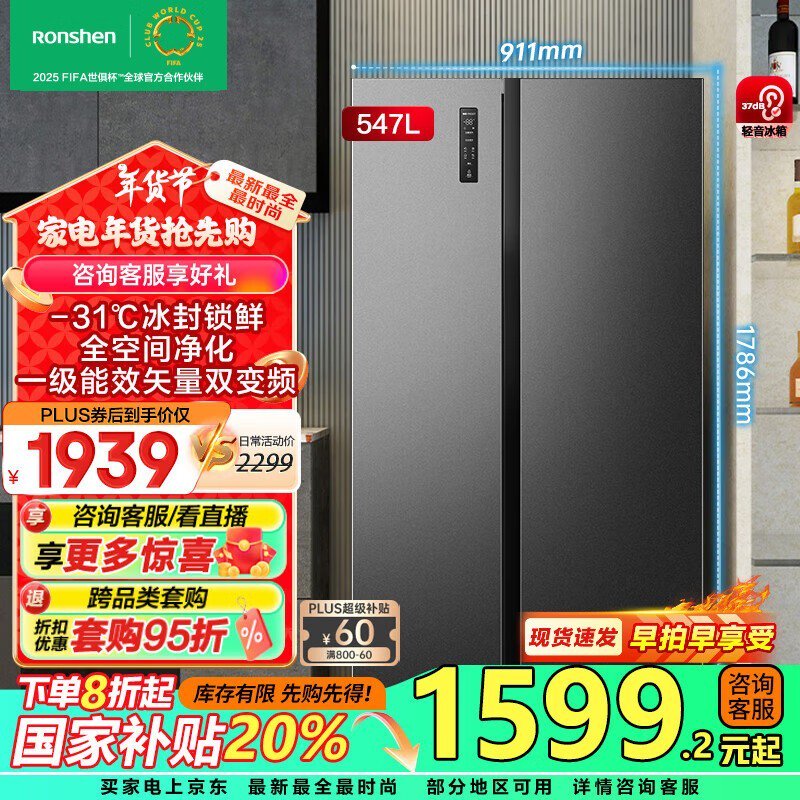 京东秒杀活动进行中 容声547升双开门冰箱仅售1439元