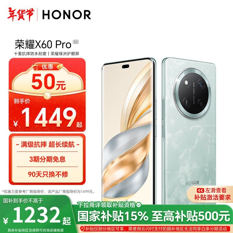 荣耀X60 Pro 5G手机优惠价格1214元,搭载高通骁龙6 Gen 1处理器