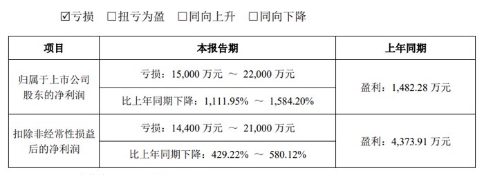 晶瑞电子材料股份有限公司预计2024年实现归母净利润亏损15,000 万元 ~ 22,000 万元,比上年同期下降1,111.95% ~ 1,584.20%;扣非净利润亏损14,400 万元 ~ 21,000 万元,比上年同期下降429.22% ~ 580.12%。