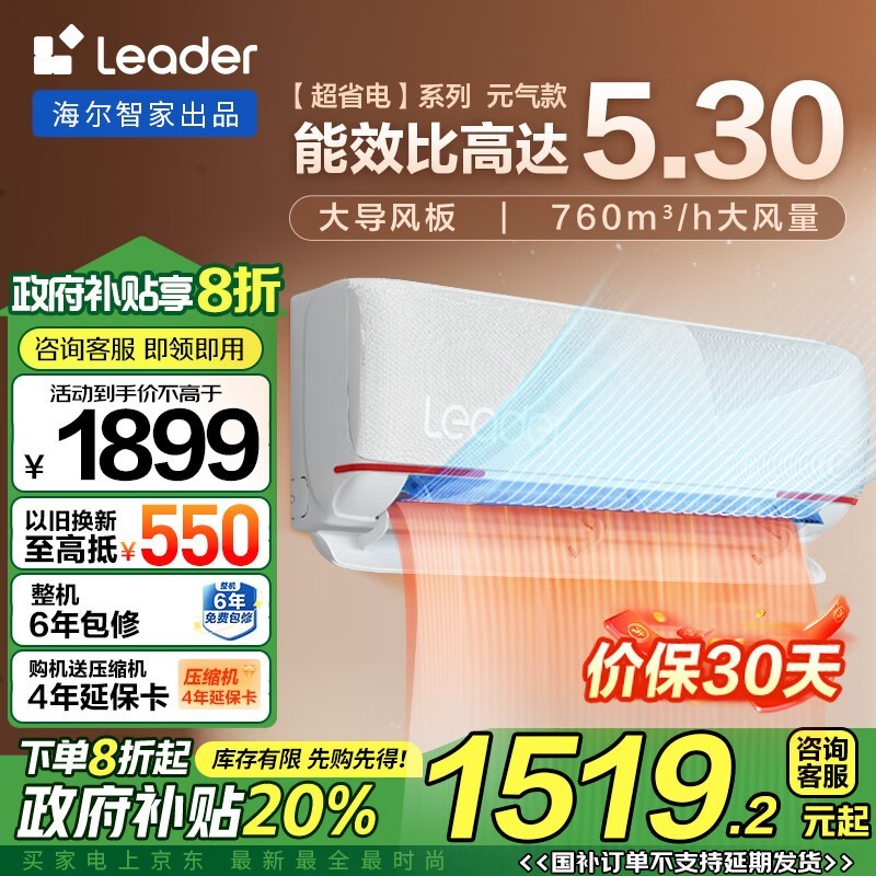 海尔大1匹空调挂机 1799到手好价