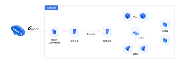 针对列车停车厂这一封闭场所,由于空间跨度大,常面临4G/5G信号弱的问题。贝锐蒲公英通过在原有网络架构中加入自研蒲公英网桥设备,采用网桥配对的方式建立无线桥接隧道,有效解决了车库内因距离过远而导致的信号覆盖难题,确保网络信号的稳定传输。