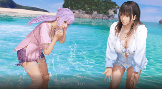 打水仗:选择两位女孩,在海滩上互相泼水。瞄准女孩子泼水,可以让她们的服装部分浸湿,享受“湿透”的效果。此外,故事情节的发展也可能会根据哪位女孩被泼得更多而有所变化。