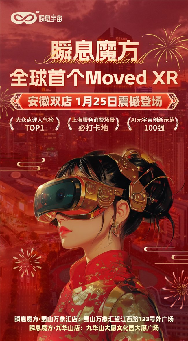 2025年1月25日,S-instant瞬息宇宙旗下「瞬息魔方」XR体验店在安徽双店齐开,喜迎新春。瞬息魔方·蜀山万象汇店和瞬息魔方·九华山店的落地,打造了一个集自然景观、人文历史和高科技体验于一体的文商旅场景,掀起了现代科技与传统文化深度融合的新潮流,开启了“XR+文旅”产业新篇章。