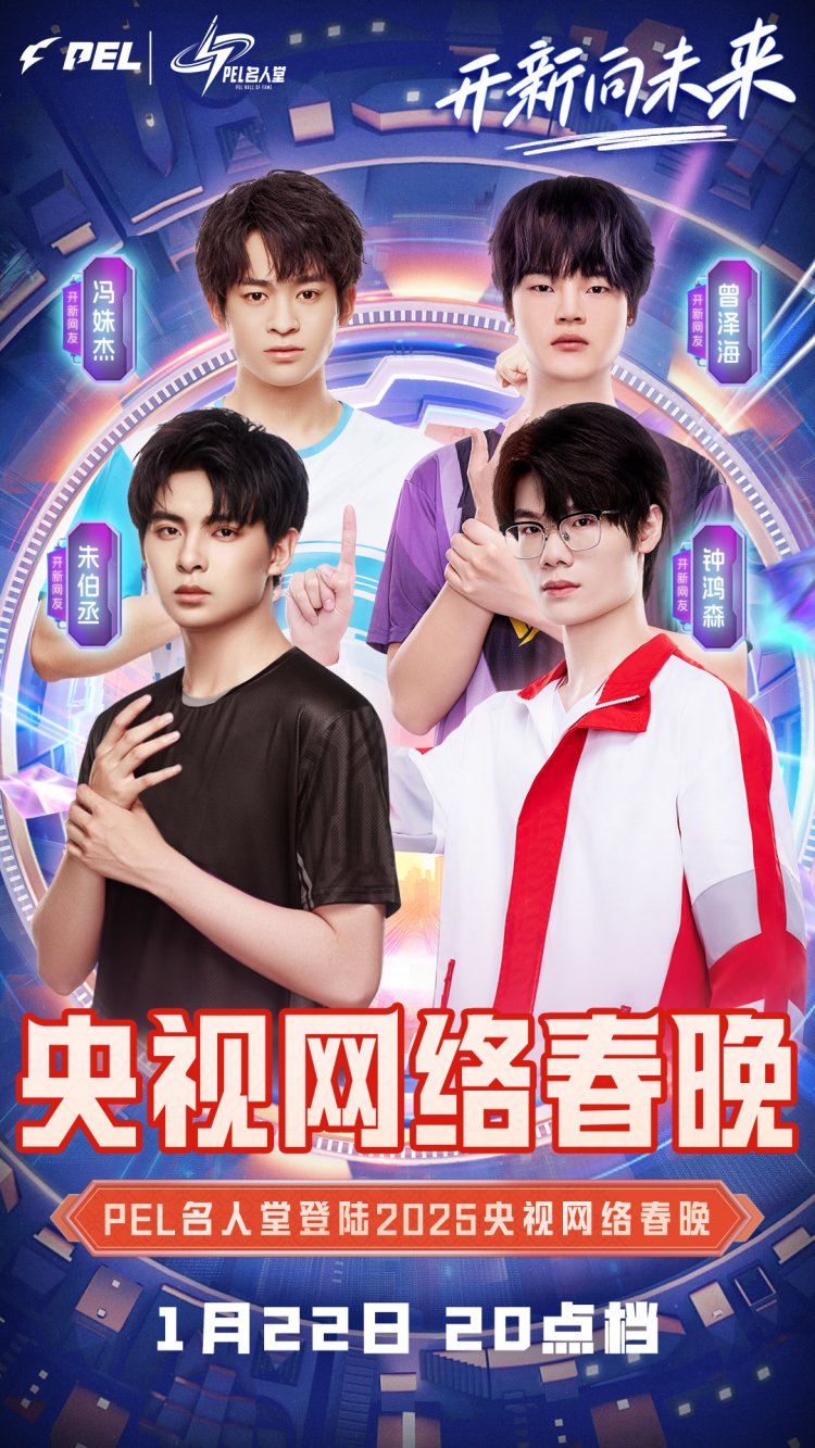 1月22日晚上8点,2025年网络春晚拉开帷幕,与往年不同的是,今年的网络春晚嘉宾中首次出现了电竞选手的身影,PEL(和平精英职业联赛)首届名人堂成员中的四位朱伯丞(ID:Paraboy) 、冯姝杰(ID:Suk)曾泽海(ID:Order)和钟鸿森(ID:33Svan)作为首个登上央视网络春晚舞台的电竞团体和邓亚萍、陈梦、龙道一、吴宣仪、何洛洛等知名运动员与艺人同台演出了歌曲节目《这世界我拼过》。