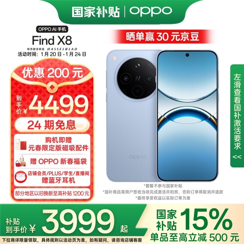 OPPO Find X8手机 无卡顿体验+追风蓝外观+强大摄像功能
