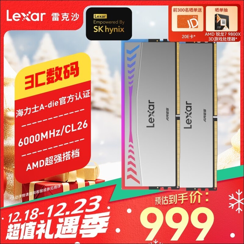 雷克沙Ares DDR5 6000MHz RGB 台式机内存 灯条 银色抢购价989元