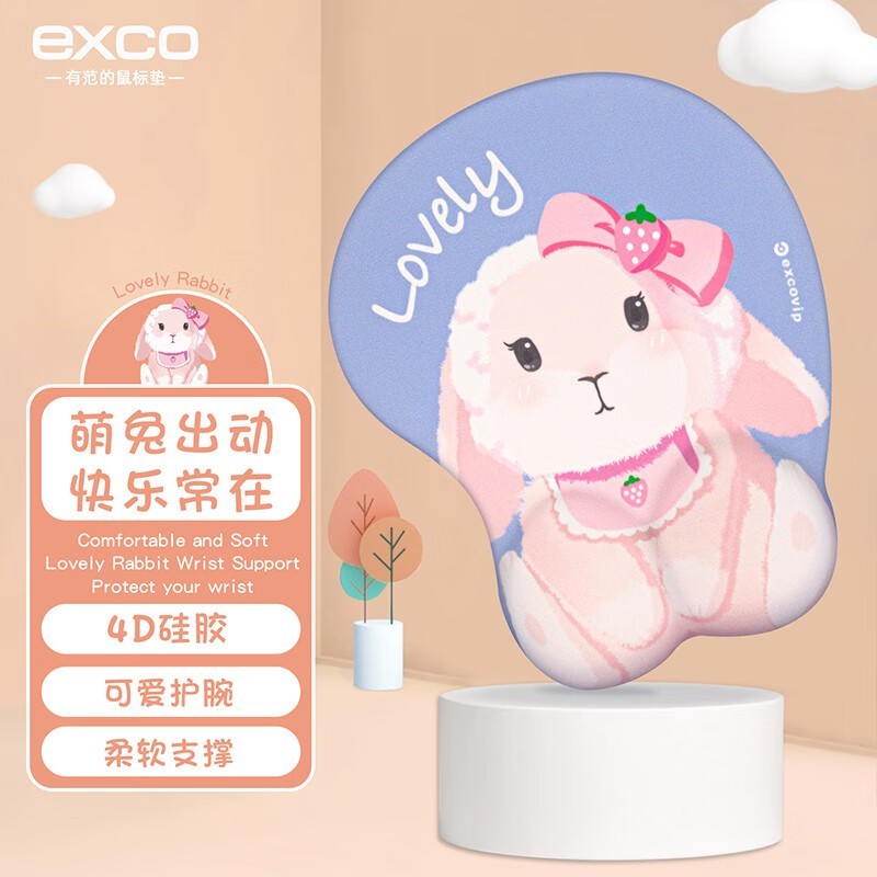 宜适酷紫萌兔鼠标垫保护手腕舒适度极佳