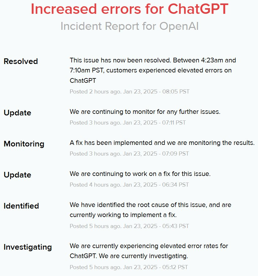 大概是因为这个消息,ChatGPT 访问量突然暴增,大量用户上线想要一探究竟,让 ChatGPT 承受不住,直接投降了。