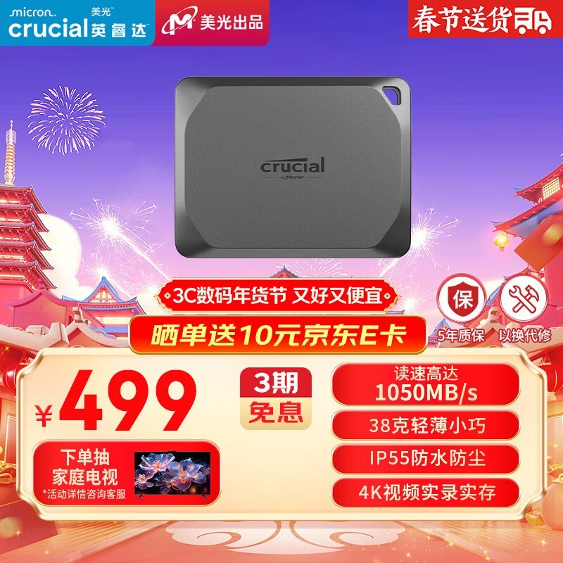 Crucial X9 Pro移动固态硬盘限时优惠!到手499元!