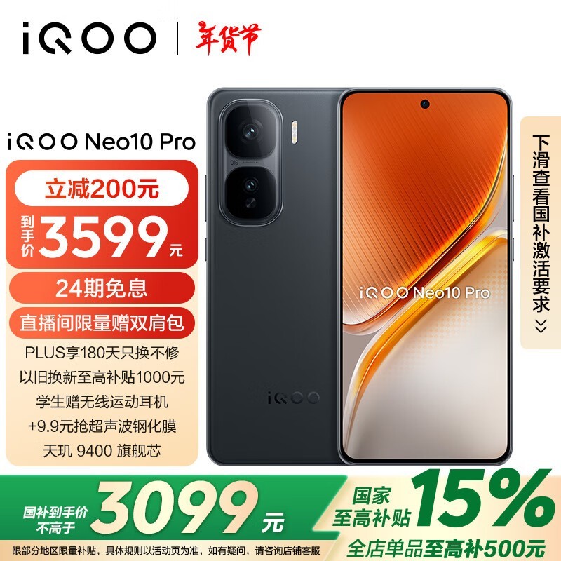 iQOO Neo10 Pro 5G智能手机3064元起,立减15%!