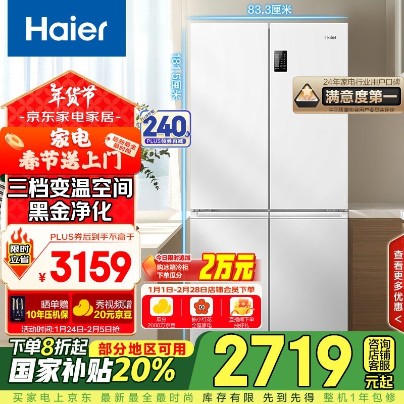 海尔 Haier BCD-539WGHTDEDWVU1 风冷无霜对开门冰箱 活动价2490元