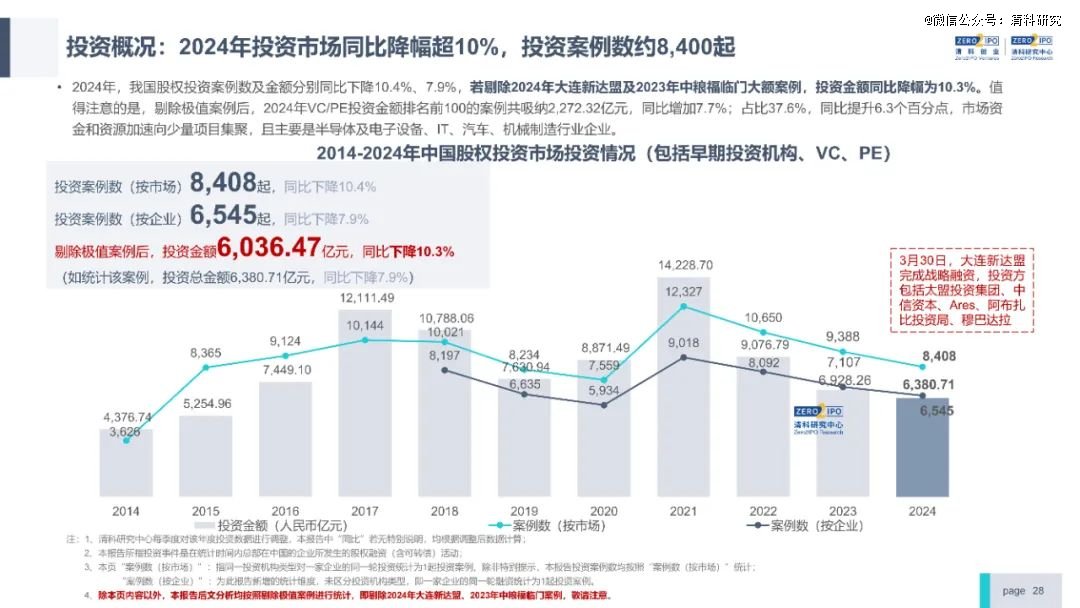 2024年中国股权投资市场整体延续下滑态势,但回暖迹象初现。