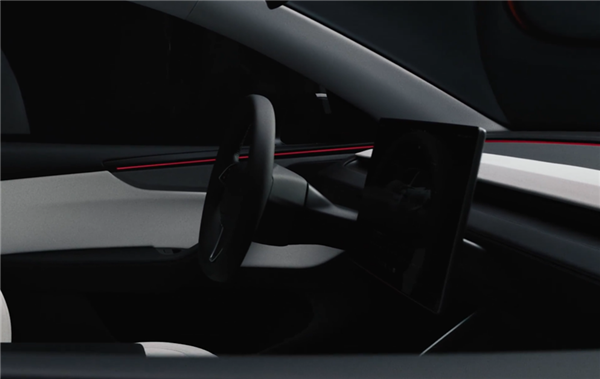 车内变化不大,重点提升了材质,整体更具档次感,方向盘上的鸣笛按键仍然在中央,按键区域多了四个按键,且依旧沿用了滚轮按键,实体转向灯拨杆得到保留,但启用了屏幕换挡,同时整车几乎看不到任何实体按键,延续极简设计风。
