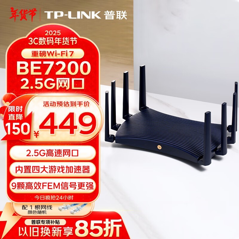 449元入手TP-LINK BE7200路由器,超强网速随便用!