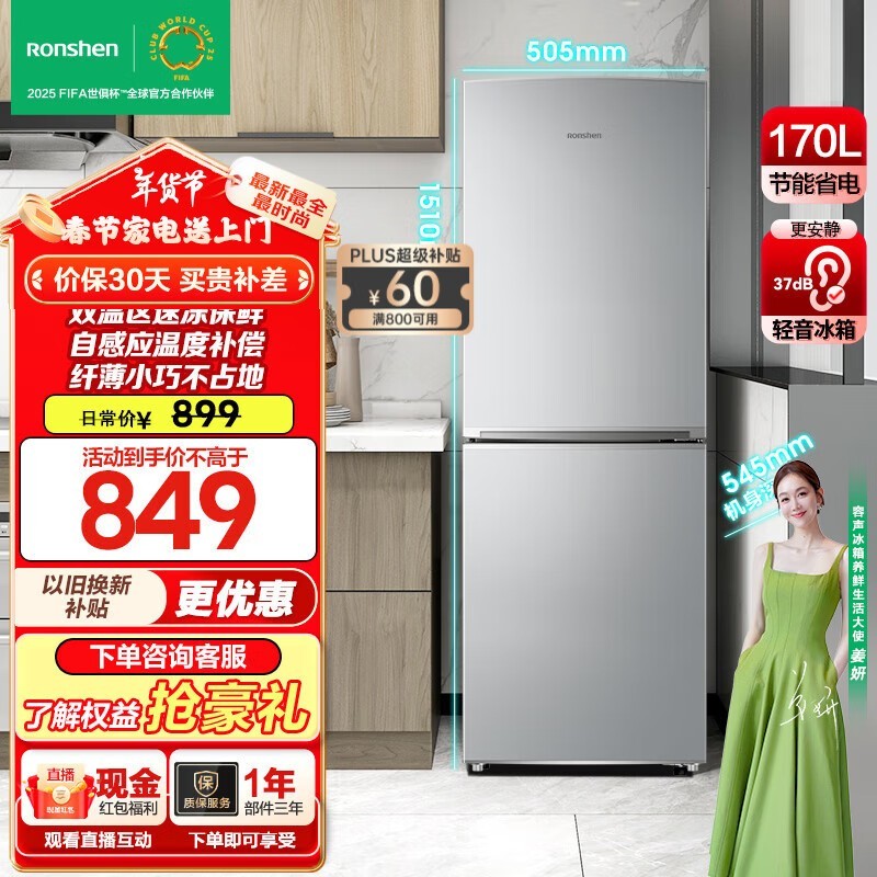容声BCD-186D11D直冷双门冰箱静音节能789到手