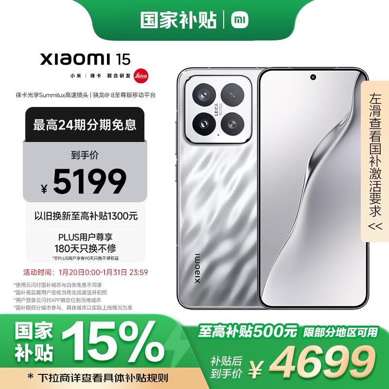 小米Xiaomi 15 5G手机降价啦!4689元入手省510元