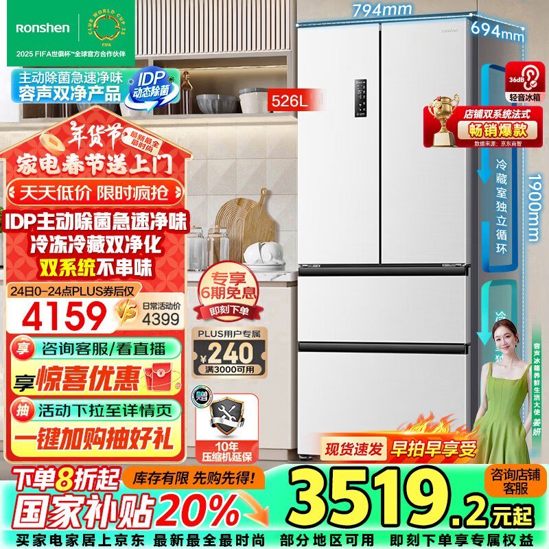 容声 BCD-526WD1MPA 风冷多门冰箱到手价2934元
